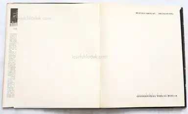 In his Danish exile Brecht collected photos taken from newspapers and wrote short poems to comment on them. Looking at the pictures and reading his words even after more than 60 years is a very touching document. The use of photos and the way of interpreting them including a description of the photo on the left hand page was for sure outstanding for the 50ies - and it still is now! Interesting enough it was published at "Eulenspiegel Verlag - Verlag für Satire and Humor" (publisher for satire and humour, sic!) - then in the GDR.