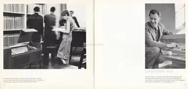 Die wohl von Dieter Rams gestaltete Werbebroschüre der Firma Braun zeigt Produkte, die zum Teil in der Hochschule für Gestaltung in Ulm von Hans Gugelot entworfen wurden, und stellt sie in privater und öffentlicher Umgebung vor, z.B. bei den Internationalen Ferienkursen für Neue Musik in Darmstadt, in Musterwohnungen (Gottwald/Hirche, Balser, Ludwig, Aalto/Knoll).