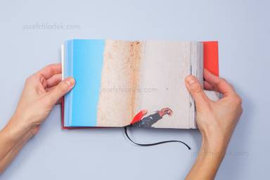 For Ustedes, los vivos [You the Living] photographer David Hornillos once again worked in the vicinity of a train station in Madrid; this time on a vacant lot adjacent to Chamartín, the city’s North station. In a similar vein to his previous project Mediodía, this book follows a constant stream of characters as they traipse across a desert landscape that might once have been a graveyard. The work is threaded together by a fine horizon line that traces the path trodden by these humans.