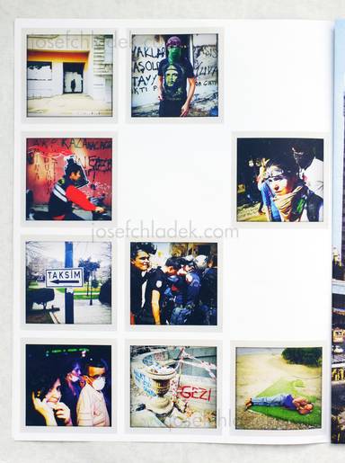 „Taksim Square in Istanbul, is in the focus of this in the wake of the civil protests spontaneously published work. Matching the actuality of events, 'Taksim Calling' was published similiar to daily newspapers - in large format of loose oversized pages. The loosely folded leaves can also be used as a poster and show either the Taksim Square in more peaceful times, tthe other, journalistic (back) side shows actual pictures of the place, often portraits of (young) people in the throes of protest. These photos were taken in the instant mode and in gridded format in equally Polaroid original size. This publication is congenial in content and form and yet very restrained - in the foreground is the people of Istanbul's Taksim Square.“