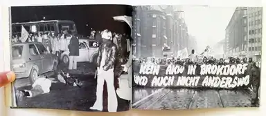 Softcover, first edition. There was a second edition enlarged by 50 pages, published between 1979 and 1983. Part of The Protest Photobook 1956 – 2013 (Curated by Martin Parr with texts by Gerry Badger).