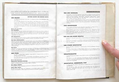 "Foto- und typografisch hervorragendes Beispiel für die Architekturliteratur der Klassischen Moderne. Die Stuttgarter Architekten Heinz (1902-1996) und Bodo Rasch (1903-1995), die auch auf der Ausstellung der Stuttgarter Weißenhofsiedlung 1927 vertreten waren und die durch herausragende Publikationen zu Werbegestaltung und Design hervortraten, behandeln hier die architektonischen Details der Fenster und Türen, die wesentliche, stilbildende Elemente des Neuen Bauens waren." (Unterwegs)