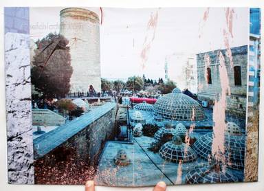 In order to mask the unsightly building process, Baku City Hall has placed banners on the fences and barriers that run along the construction sites. With this book, I want give a sense of the imposed artificiality that is slowly displacing the actual cityscape.“ (Ilkin Huseynov, Ajam Media Collective)
