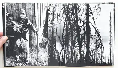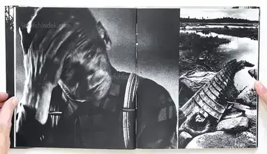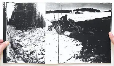 The book was a visual pamphlet that struck the reader's eyes with the restructuring of the countryside during the years of the great emigration, a time when the poverty of the widowed mother's extended family was absolute and when the Finnish Rural Party united small farmers to the political front for the last time. The opening, in which Ismo Höltö's image of a homesteader living in modest circumstances but with a Vennamo self-confidence with his wife under his arm, is combined with the house standing behind the waterlogged land in Savolainen's view summarizes the book's subject area." (Finnish Museum of Photographic Art)
