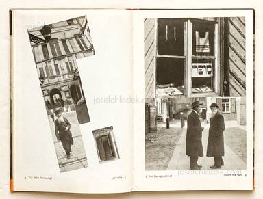 The images taken in 1928 show street scenes and architectural views of the Jewish ghetto in the Lithuanian capital Vilnius (or Wilna in German). There also many images of people, some up close, but mostly taken from odd angles viewed from balconies or upper floor windows. It seems that this book is fighting with itself deciding what kind of book it should be. It has so many elements which all came together to fruition in Paris 80 photographies de Moï Ver. Technically the book must have been published after the release of Paris, but this embryonic style and design can only pre-date it. It tends to suggest that the book was conceived much earlier, but the publication delayed.