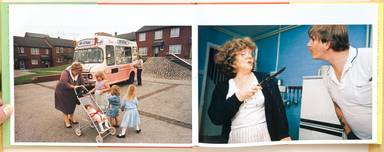 "Living Room is in fact a biography of two families in Nottingham. We see them mostly on Saturdays, but we imagine them on every other day of the week: we imagine them in history, which today again tries to treat them like shit: we imaqine them all as children; we imagine them all growing old. Each picture holds those whom it shows, as a family name holds forever the one to whom it has been given. Aunt Elsie is always Aunt Elsie. Dad is always Dad even when he's a granddad. Now we call Mum Mum even when she was a little girl. The opposite of instant pictures, these photos are as lasting for a lifetime as tattoos, yet all they show are split seconds. This is because, brought there in the concentration of Nick's love, life breathes through every one." (from the essay by John Berger)