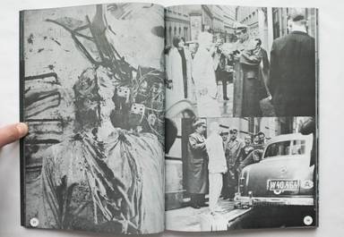 Wien: Bildkompendium Wiener Aktionismus und Film is probably the most important publication in understanding the Wiener Aktionismus (Viennese Actionism) movement. This black book is a real force. 316 pages packed with photographs, newspaper clippings, documents and texts dealing with practically the entire movement (it continued beyond 1970): a provocative revolution in art and culture, as is the book. The title on the cover is printed in black on black paper. The pages are made with black painted edges. Peter Weibel and coeditor Valie Export created a monumental work for the Vienna Actionism movement, and Weibel even claims to be the inventor of the name. The pervading atmosphere of the book is vibrant and vile, just like the movement itself. 240 pages of photographs and newspaper clippings are followed by four chapters entitled: kommentar (commentary – 28 pages) synopsis (32 pages) texte (auswahl) (text selection –13 pages) and zusätze (extras – 3 pages). A compendium of the senses. (achtung.photography)