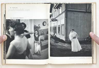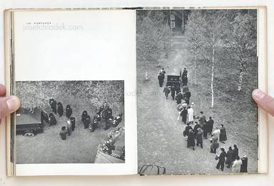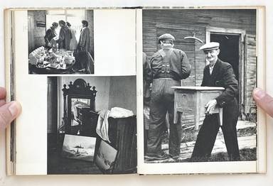 Indeed, in Byn med det bla huset (The Village with the Blue House), the relationship is more symbiotic than most, for writer and photographer are one and the same. This is often a recipe for failure, but here it is a complete success; Jonsson proves himself to be highly accomplished in both fields. A prolific and renowned figure in Sweden, he has made a study of his home town, which is in the farnorth of the country, in the district of Västerbotten. This was a village of 304 souls when he began to photograph, but only 299 when he finished. As might be expected from an insider's view, his vision is warm and sympathetic, full of sentiment yet without sentimentality. His photographs are like his text, simple, elegant, but profound, printed in a beautiful soft grey gravure. His eye for composition and tonalities may be compared to that of W Eugene Smith, but without Smith's unfortunate tendency to lay on the schmaltz with a trowel. (from Parr/Badger - The Photobook: A History Volume I)