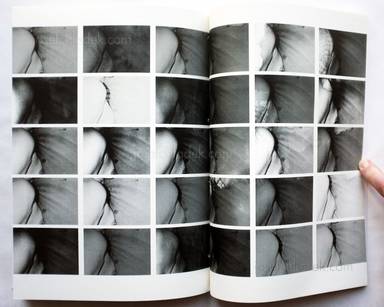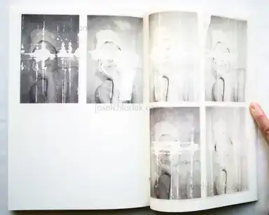 Softcover, french fold stab strip binding, 2 colours silkprinting on white cloth. Edition of 200 copies.