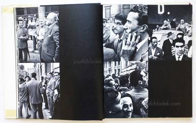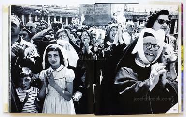 „The book is divided into five chapters: Cittadini di Roma (Citizens of Rome), La Strada (The street), Città eterna (eternal city), Ragazzi (boys), Mondo cattolico (Catholic world). Each chapter is introduced with text and accompanied by small pictorial snippets of ephemera, snapshots and illustrations. The images themselves are pure Klein, demonstrating once again his ability to take seemingly stereotypical subjects and create something new, through his idiosyncratic visual language.“ (achtung.photography)